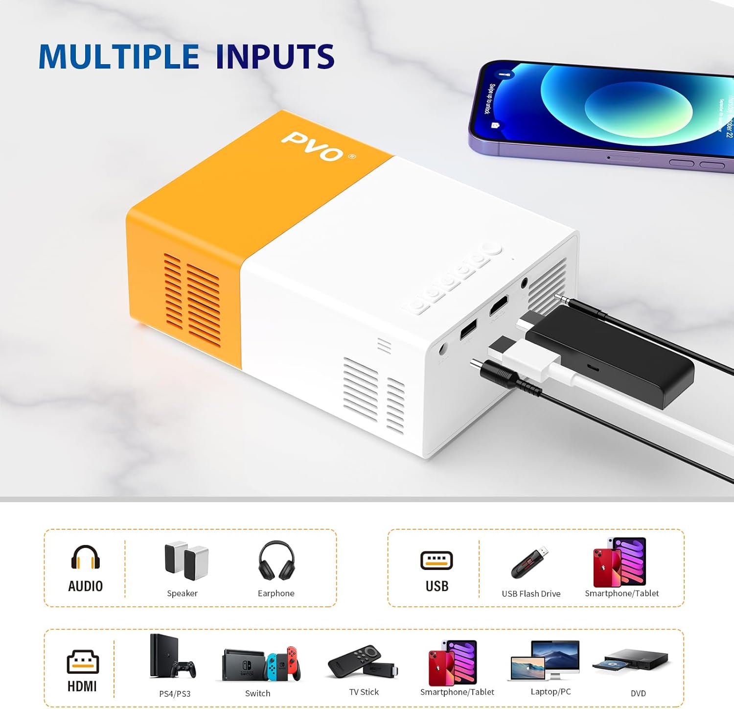 🔗 [Compatibilidad Amplia] El proyector PVO no solo ofrece una calidad de imagen impresionante, sino que también es versátil en términos de conectividad. Con soporte para múltiples interfaces y una conexión WiFi confiable, puedes integrar fácilmente diferentes dispositivos y adaptar el proyector a tus necesidades profesion